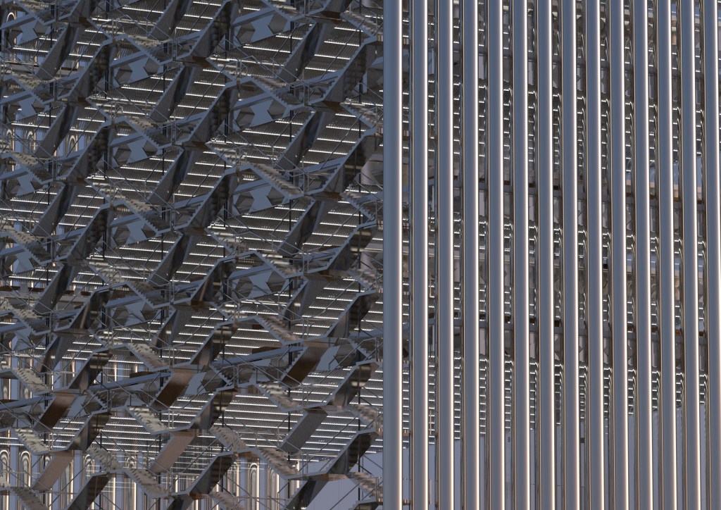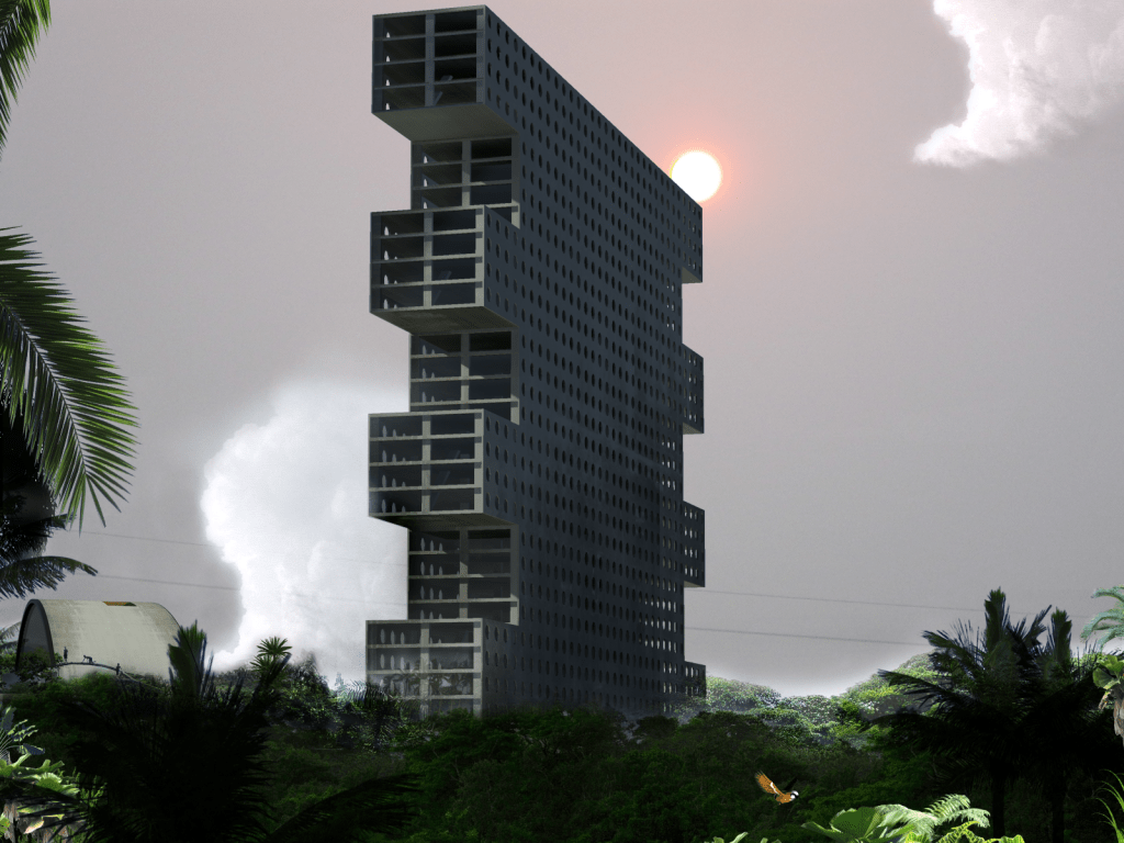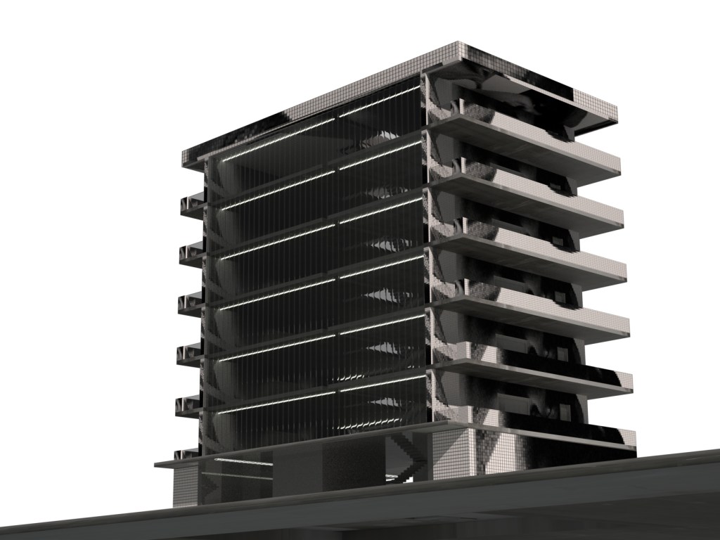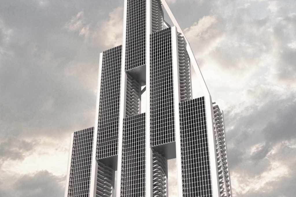 Tower loads are readable in the design. Open air terraces create shadow for 100% glazed office / apartment spaces on all floors. The building does not care about its form of use, all typology cases are designed to fit into its structure.