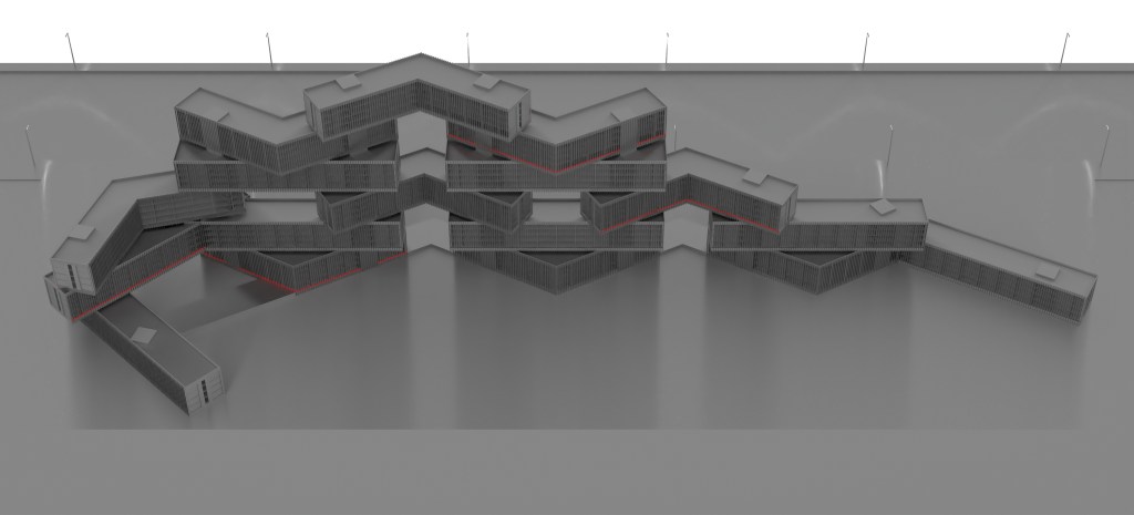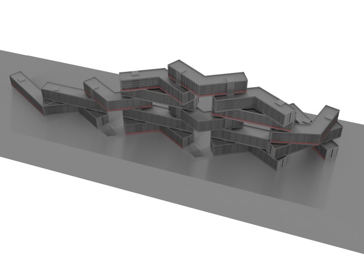 A complex and moular building, fitting perfectly into a stupid master grid while stayng maximal diverse in organisation, layout and function. Parametric content leads to parametric building, still behave as being part of the griddy masterplan.