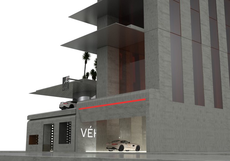 Virtual showrooms on the ground floor simulate car development processes and visualize vehicle configurations and over-the-air updates that transform the used vehicles into modern versions of themselves while the owner / renter relaxes in the motel bistro. Autonomous driving and parking cars will follow and meet the user automatically after the break.