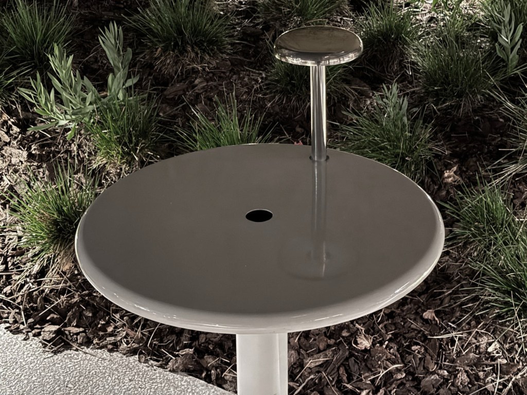 Movable & fixed table version, screw-on-lamp available in Stainless Steel, Umbrella hole if needed. Constructed * 2022. Realised.