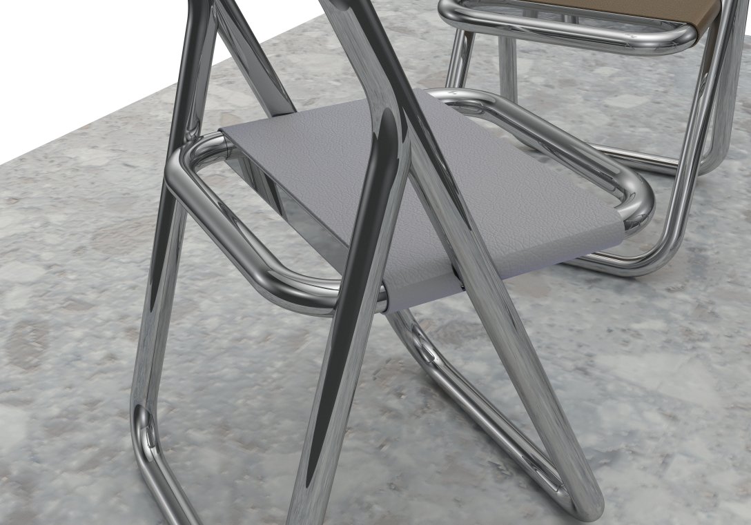 Fat Steel Garden Tables by Marc Paulin. Aluminum Chairs by Klemens Schillinger.